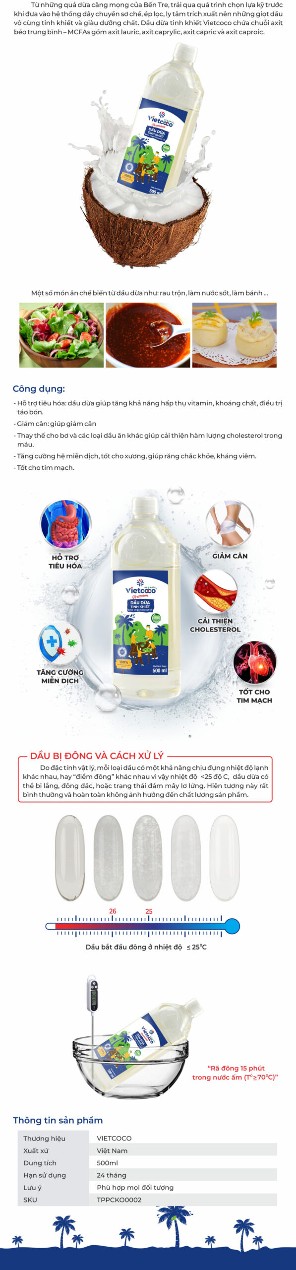 - Hoàn toàn tinh khiết và thơm mùi dừa tươi nguyên.