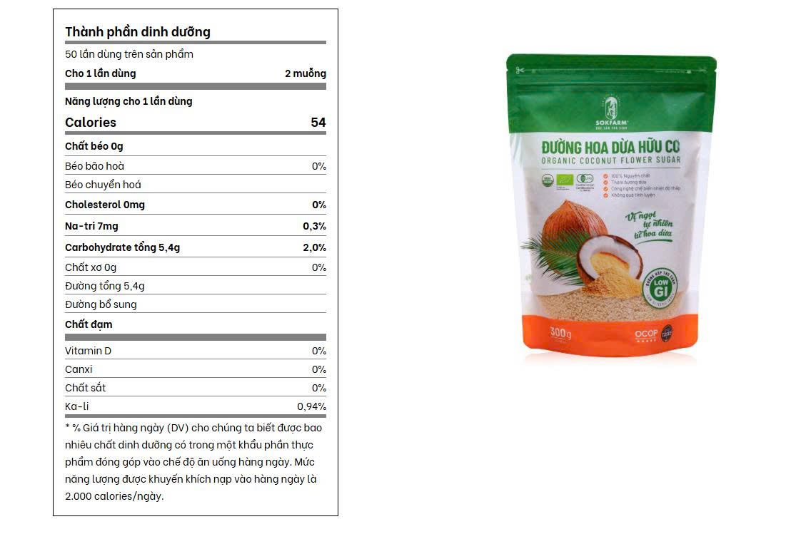 ĐƯỜNG HOA DỪA ORGANIC SOKFARM – VỊ NGỌT THIÊN NHIÊN LÀNH MẠNH, CHUẨN HỮU CƠ QUỐC TẾ