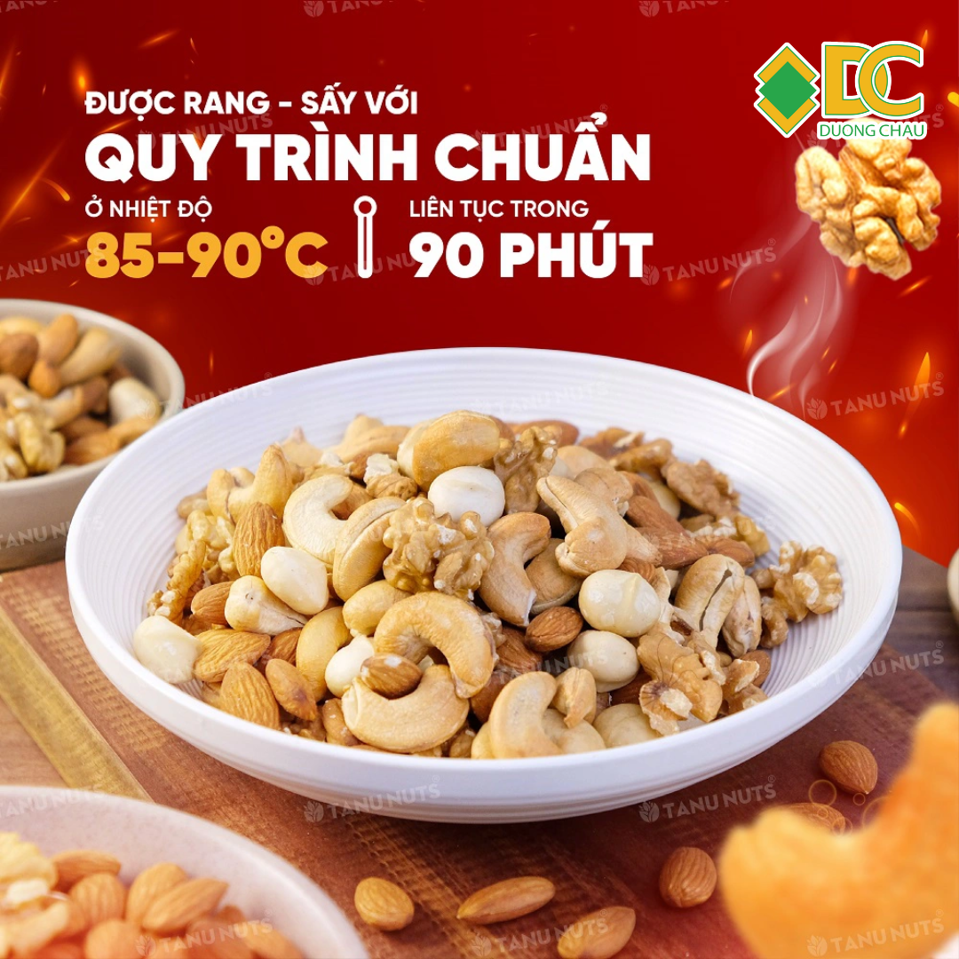 – Hạt mix dinh dưỡng rang theo quy trình, công nghệ hiện đại, hạt đạt độ ẩm vừa phải, giòn thơm ngon.