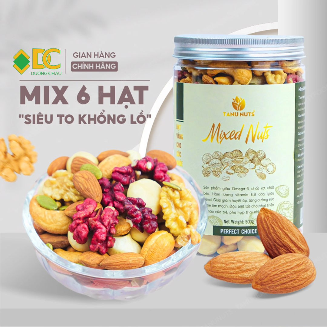 Hạt mix dinh dưỡng 6 loại gồm hạt macca, óc chó vàng, óc chó đỏ, hạnh nhân, hạt bí xanh, hạt điều