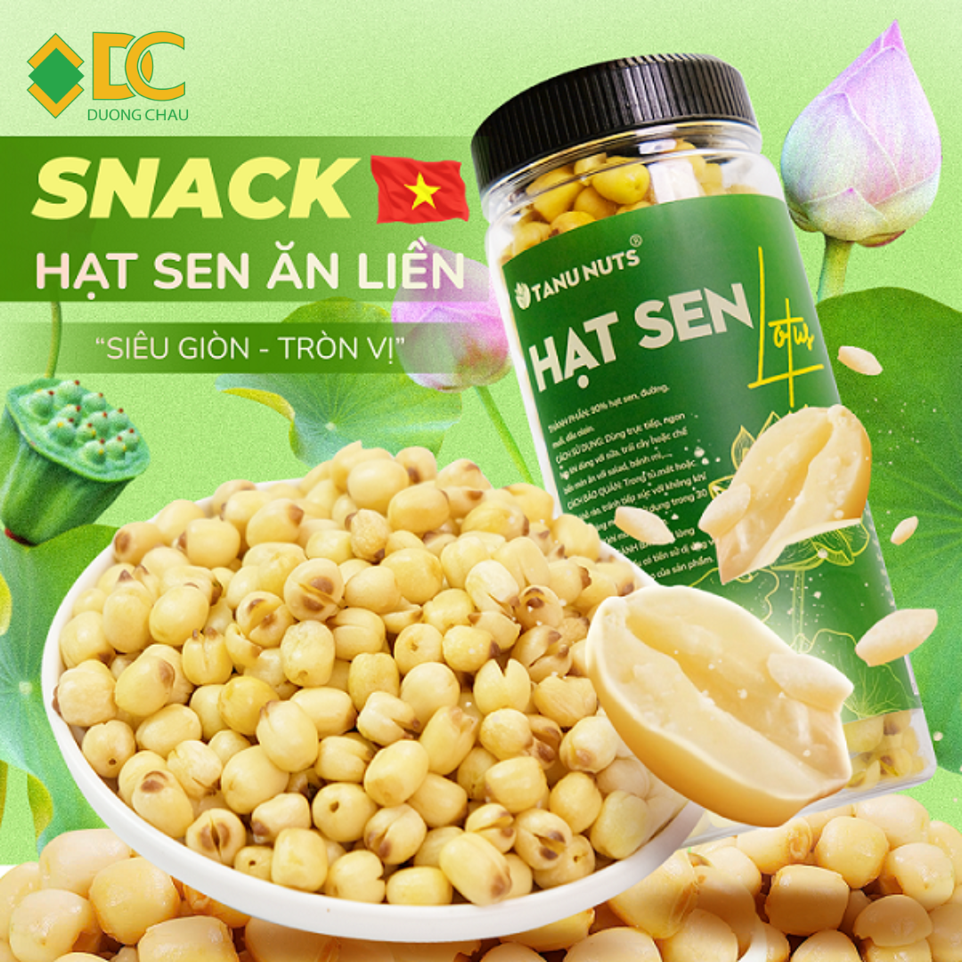 Hạt sen sấy giòn ăn liền TANU NUTS hũ 250g, hạt dinh dưỡng ăn vặt healthy cho văn phòng, ăn kiêng, giảm cân